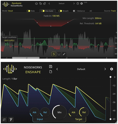 NoiseWorks Vocal Bundle is a software plugin bundle designed specifically for vocal dynamic processing within a studio setup. It includes two primary effects: DynAssist, an ARA- and AI-powered vocal suite for editing, leveling, and de-essing, and Enshape, a surgical dynamic shaper for compression, expansion, and shaping. This bundle aims to streamline and simplify time-consuming mixing processes, enhancing overall efficiency in vocal production.