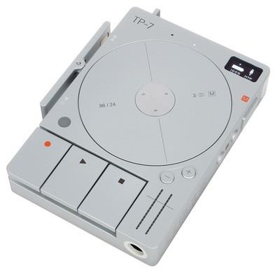 The Teenage Engineering TP-7 is a multi-track field recorder designed for high-quality audio capture and playback. It features three configurable TRRS mini-jack sockets that allow for stereo input, stereo output, or headset use. This hardware device supports up to three simultaneous stereo tracks with a conversion rate of 24-bit/96kHz, making it suitable for various audio applications in both studio and field settings.